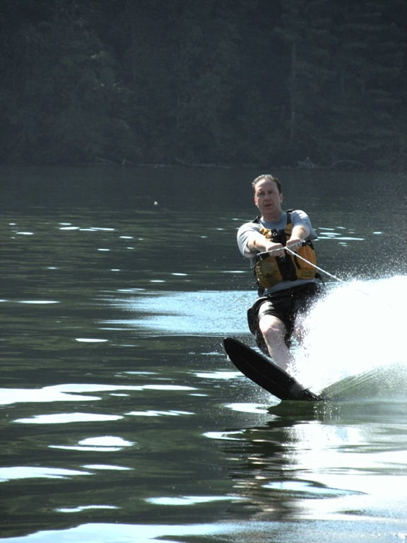 Dry... for a few moments. ;)Our talented water-skier hadn't had a chance to practice in many years... so this was an added treat for him.
